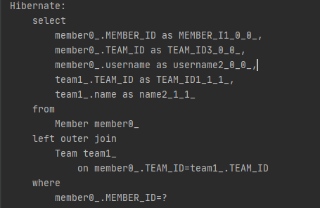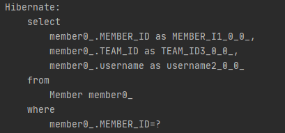 위에서 아무것도 설정해주지 않았을 때와 같이 find를 통해 Member를 찾는 코드를 실행했을 때