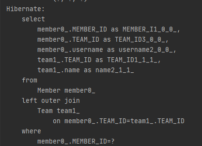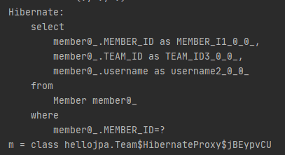 아직은 Team의 프록시를 가져오는 것이기 때문에 (m.getTeam) 이때 쿼리가 나가지 않고