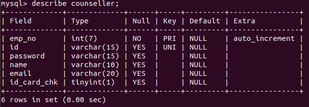테이블 구조 확인