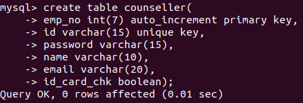 테이블 생성