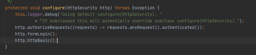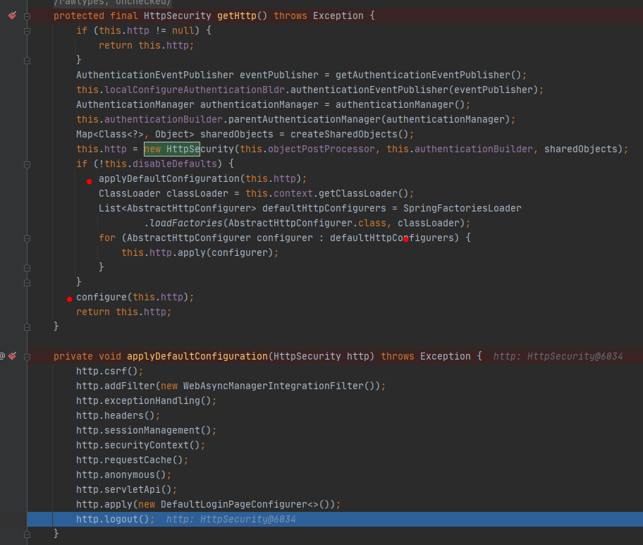 HttpSecurity의 applyDefaultConfiguration에서 11개 설정을 초기화해주고 configure메서드로 넘어가는데,