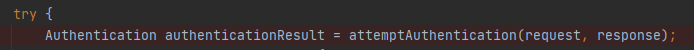 attemptAutentication을 통해서 인증을 성공하면 authenticationResult로 인증 객체(5번)를 리턴 받는데