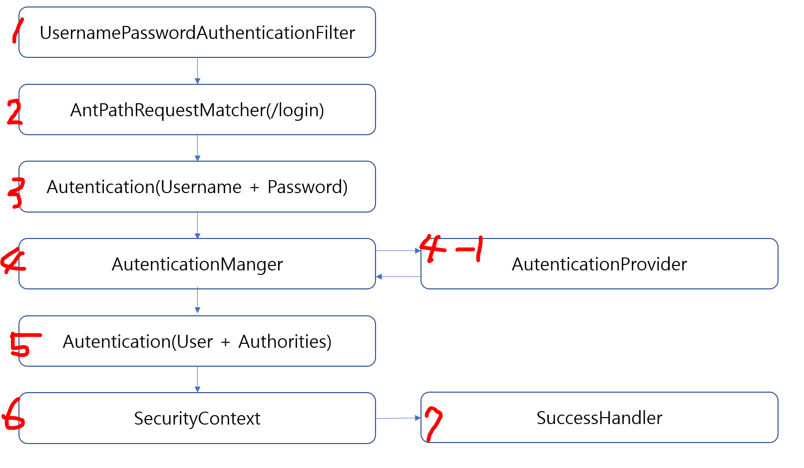 내부적으로 각각의 인증처리의 역할을 따라 여러 클래스를 활용해서 인증처리를 하게 된다.