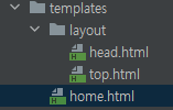HTML에서 header를 담당할 head.html과 navigation bar를 구성할 top.html, 그리고 홈 화면인 home.html로 구성되어 있습니다.
