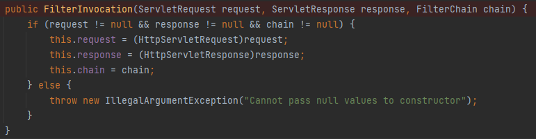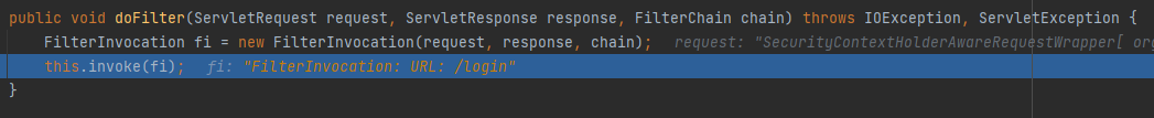 만약 제가 www.localhost:8080/login 을 입려했다고 가정한다면 request, response, chain을 FilterInvocation의 생성자에 넘겨 저장하고 입력했던 요청정보를 알아낼 수 있습니다.