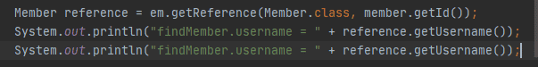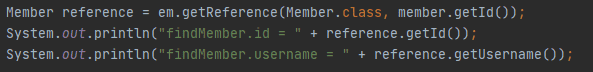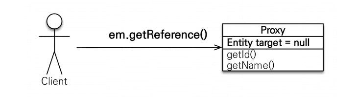 - em.getReference() : 데이터베이스 조회를 미루는 가짜(프록시) 엔티티 객체 조회