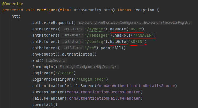 - /mypage는 ROLE_USER의 권한만 접근할 수 있습니다.